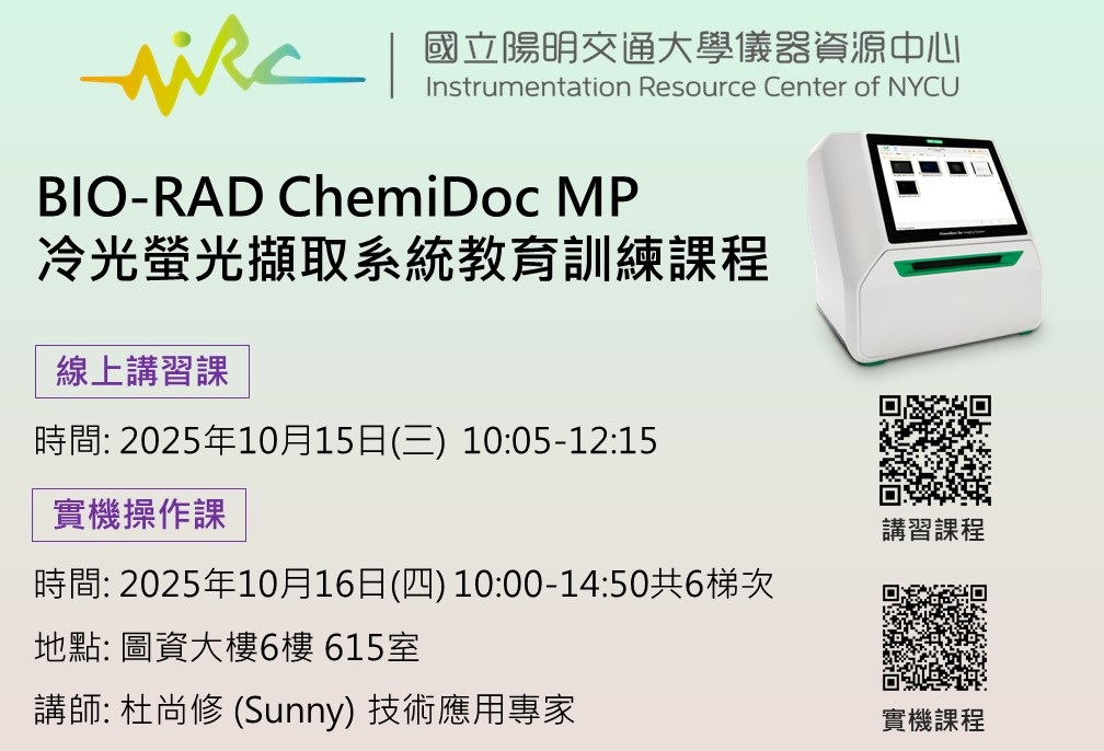 [陽明校區] BIO-RAD ChemiDoc MP 冷光螢光擷取系統教育訓練課程