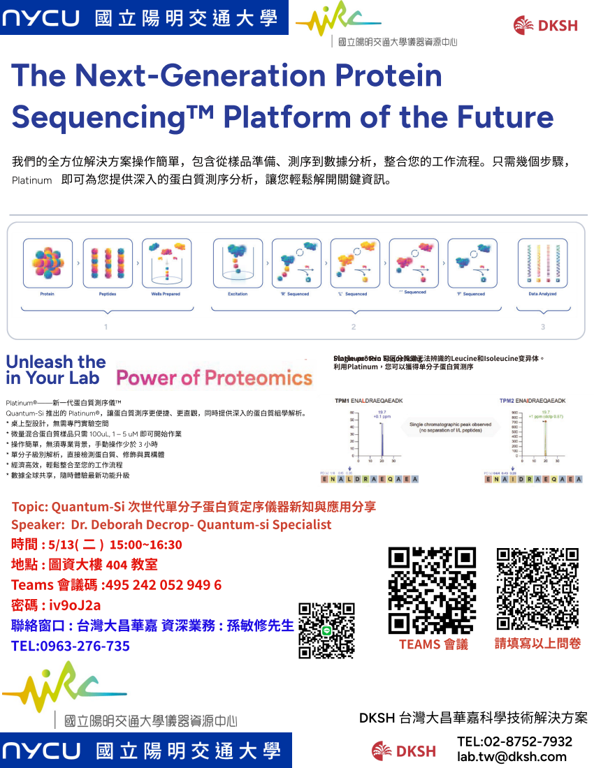 [陽明校區] 質譜儀設施-Quantum-Si 次世代單分子蛋白質定序儀器新知與應用分享